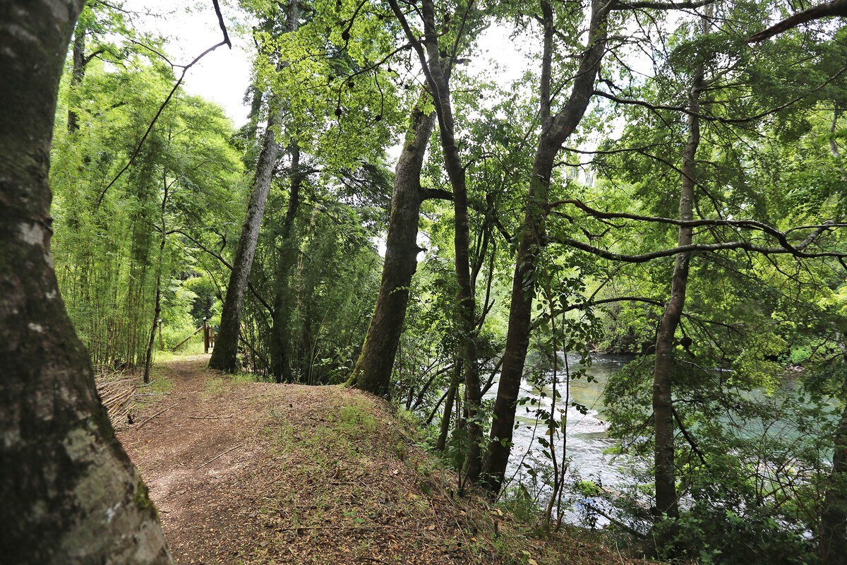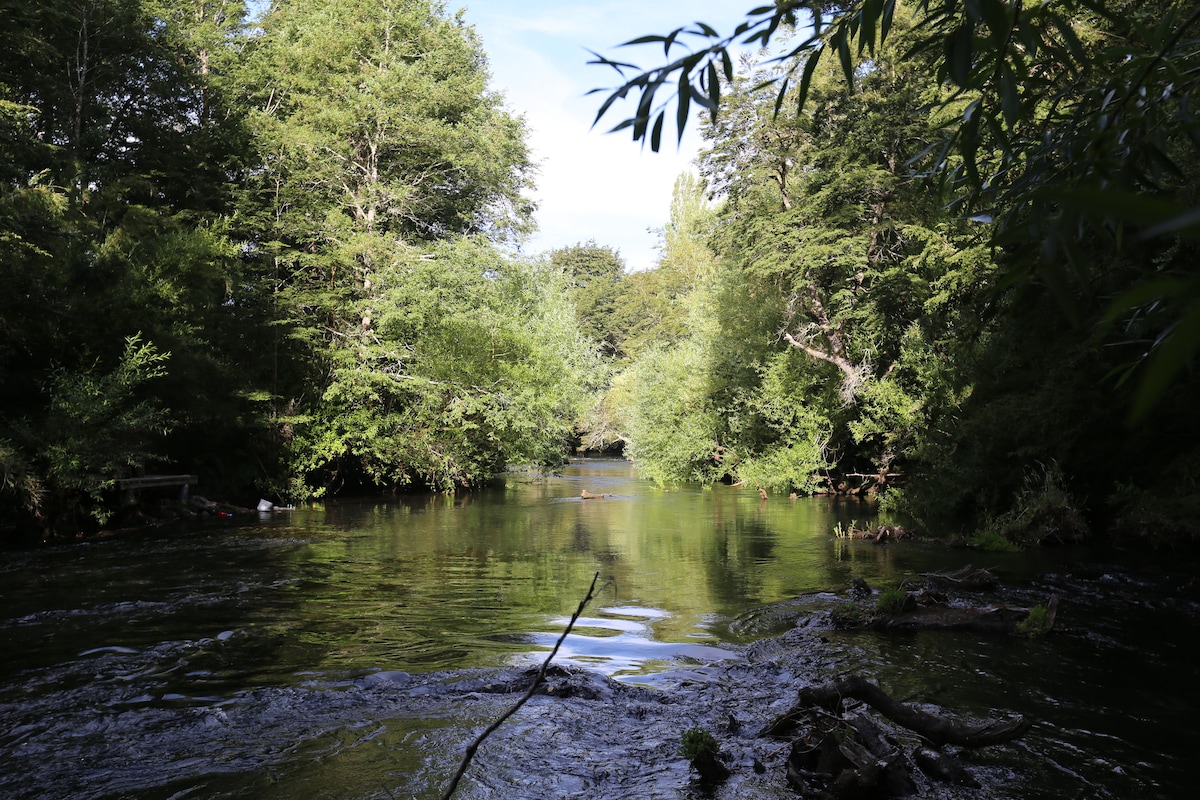 Instalada en un entorno natural, hermoso y amigable con la naturaleza, la Aldea queda al costado del río Palguín en la comuna de Pucón.