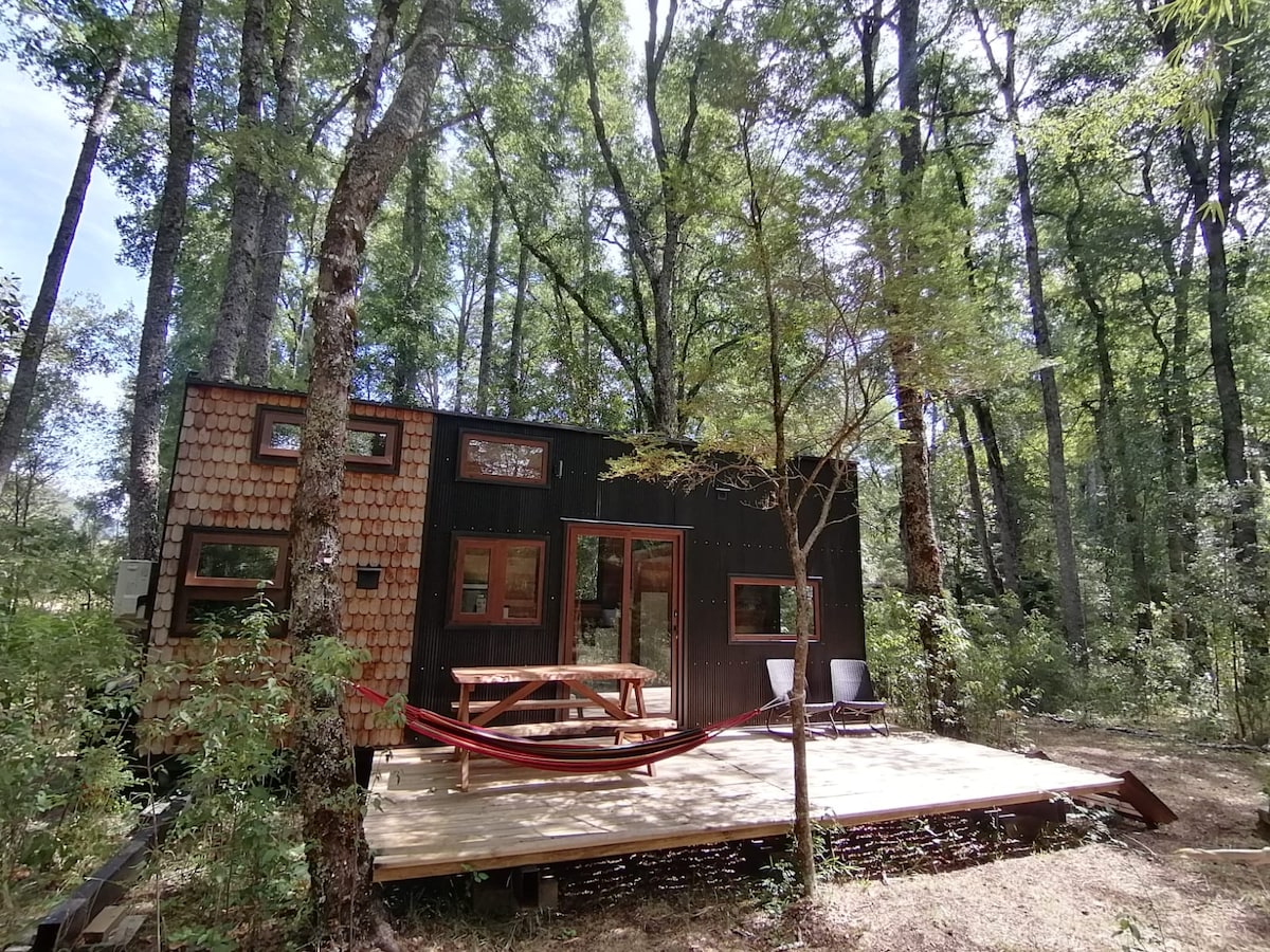 Una buena ventaja de construir tu Tiny House con nosotros, es que la puedes dejar aquí en Aldea Maya Mapu.